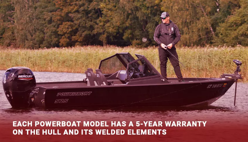 Łodzie aluminiowe Powerboat™ charakteryzują się przede wszystkim wysoką kulturą produkcji i wysoką jakością materiałów. Dzięki temu nasze łodzie są trwałe, co pozwala nam wprowadzić dodatkową ograniczoną gwarancję na wszystkie modele łodzi.